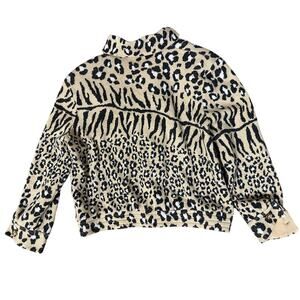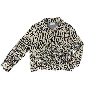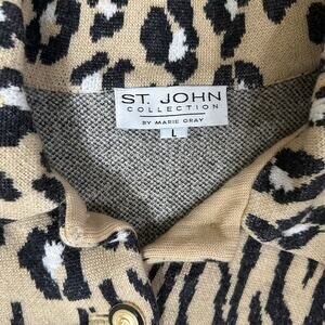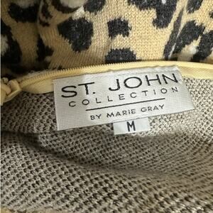 St. John Collection Vintage Black Tan Leopard Animal Print Sweater Twinset M/L