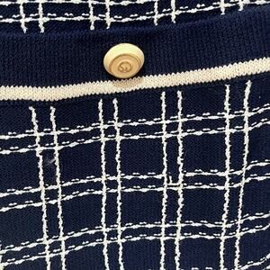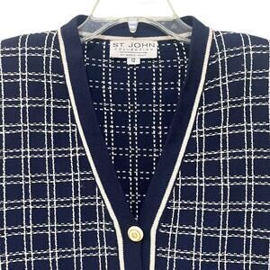 St John Collection Vintage Blue/ White Windowpane Plaid Knit Button Sweater 12