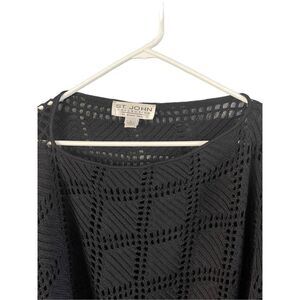 St. John Collection Womens Black Ladder Lace Cut-Out Fringe Poncho Sweater Large