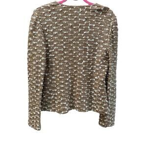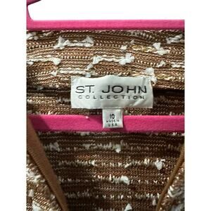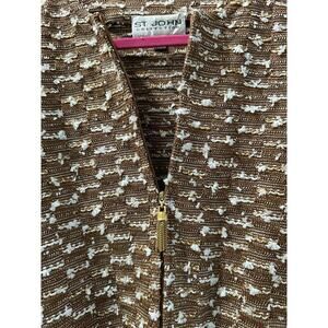 St. John Collection Women's Brown White Tweed Knit Zip Up Sweater Jacket Size 10