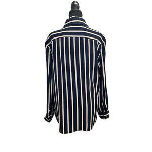 St. John Collection Women’s Striped Navy And Cream Dress Shirt Size 10