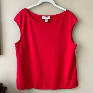 St John Collection Wool Blend Cherry Red Cap Sleeve Boat Neck Knit Top Size L