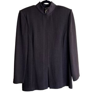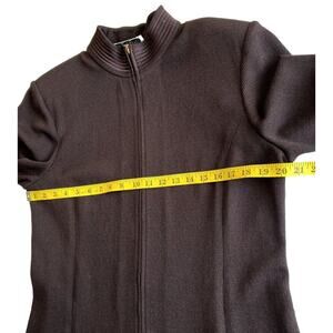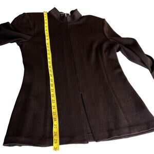 St. John Collection Zip Cardigan Womens Size Medium (NO SIZE TAG, PLEASE SEE MEASUREMENTS) Brown luxury designer classic Long Sleeve Shoulder Pads Lagenlook Effortless Fall Fashion Layering Piece Office