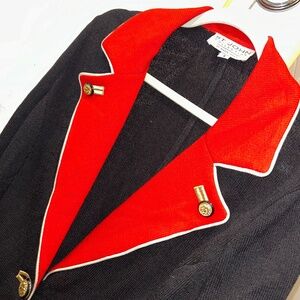 St. John Collection vintage black red gold buttons military style Santana knit jacket 8