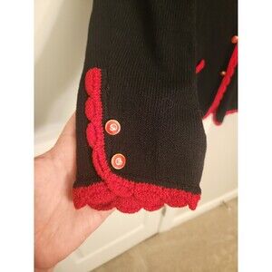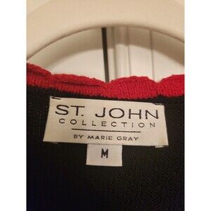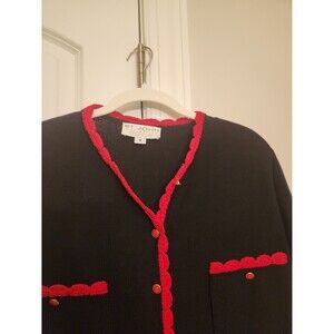 St. John Collection by Marie Gray Black Knit Blazer Cardigan w/ Red Trim Size M
