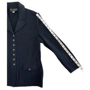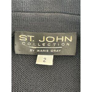 St John Collection by Marie Gray Black Sweater Blazer Vintage Gold Button Size 2