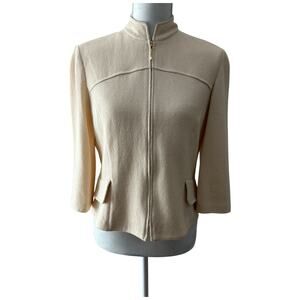 St. John Collection by Marie Gray Full Zip Knitted Beige Jacket Size 8
