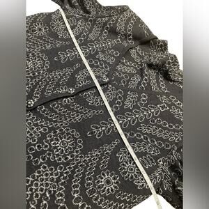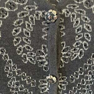 Button Up Cardigan has absolutely beautiful unique buttons- see zoomed in photo of a small stain on front right (I haven't tried to treat- selling as is)- otherwise in excellent condition. Size 4.