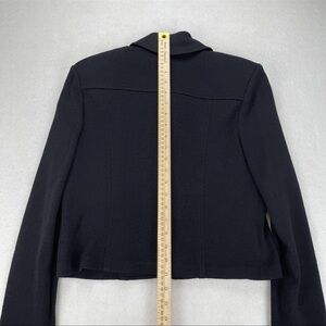 Elevate your wardrobe with the St. John Collection by Marie Gray size 6 suit jacket. Exude timeless elegance in this blazer that expertly combines classic design with a modern knit fabric. The color black offers versatility, making it a perfect match for various outfits and occasions.