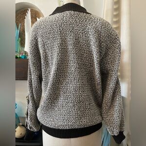 St. John Collection by Matie Gray Vintage Knit Sweater with Leather Accents and shoulder pads(not bulky)