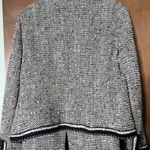 This Black and Cream "Chanel" looking suit set is a classic. Blazer with zip skirt. Both pieces are size 8.