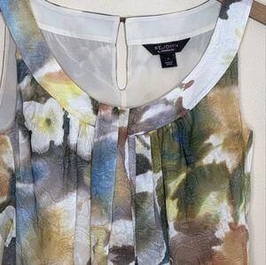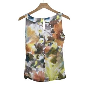 St. John Couture | Abstract Floral Earthtone Print Silk Blend Tank Top Size 2