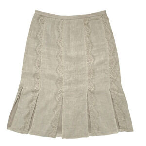 St John Couture Beige Linen Lace Flapper Slit A-Line Skirt