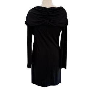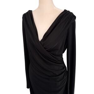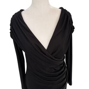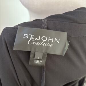 St. John Couture Black Draped Sz 6 Formal Cocktail Dress Long Sleeve Knee Length