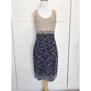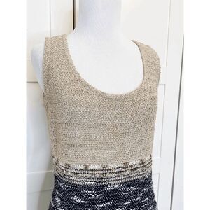 St John Couture Boucle Knit Sleeveless Dress Brown Black 4 Color Block