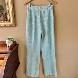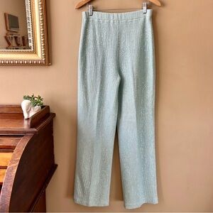 St John Couture Iridescent Sequin Santana Knit Wide Leg Pants Tiffany Blue 6
