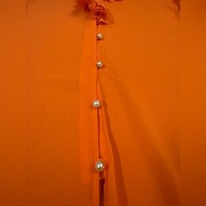 St. John Couture Orange Ruffle Silk Pearl Button-Up Blouse Size 10