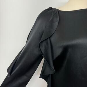 St. John Couture Satin Ruffle Blouse Black Top | Size: Small