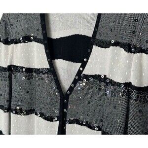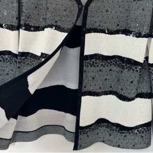 St. John Couture Sequined Open Front Striped Cardigan Black & White 8 Medium