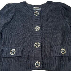 Featuring an embellished button closure, this jacket adds a touch of glamour to any outfit. The knit fabric offers both comfort and style, making it the perfect choice for any occasion. With its flattering fit and timeless design, this jacket is a versatile piece that can be dressed up or down.