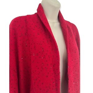 St John Couture Size P (2) Red Open Front Cashmere Wool Sweater Black Sequins