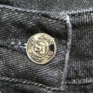 St. John Couture Womens Black Rhinestone Studded Straight Leg Jeans Size 10