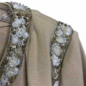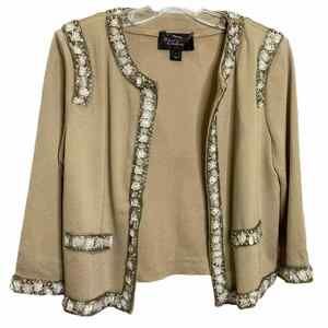St. John Couture Women's Blazer Suit Jacket Formal Knit Tan Silver Gems Beaded 8
