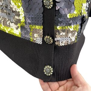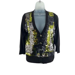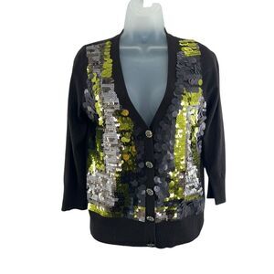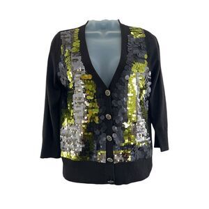 St. John Couture Cardigan Women's P Black Sequin Wool Silk Cashmere Buttons
