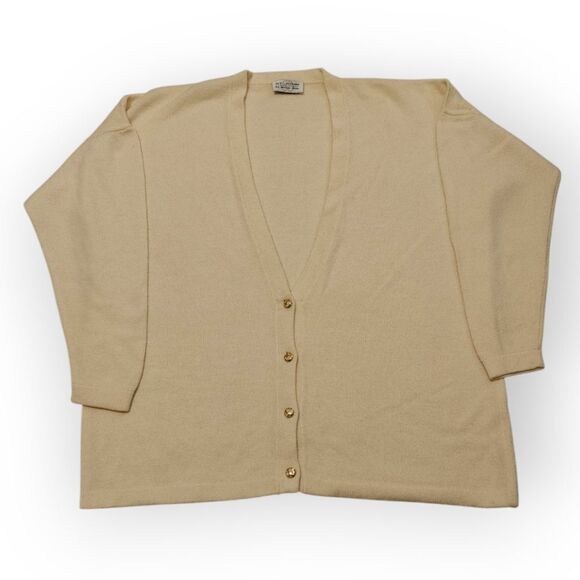 St. John Cream Cardigan Sweater V-Neck Long Sleeve Sz XL