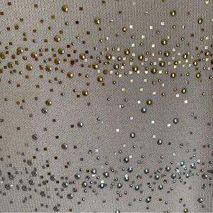 Elevate your wardrobe with this chic St. John tank, featuring a sleeveless design and a shimmering gold and silver embellished finish. The mock collar adds a touch of sophistication, making it perfect for both party and formal occasions.