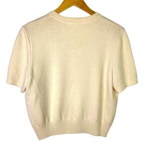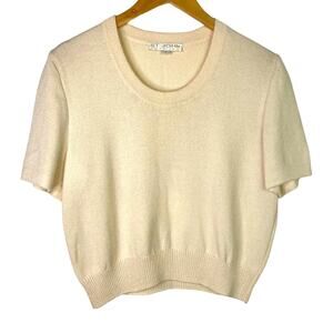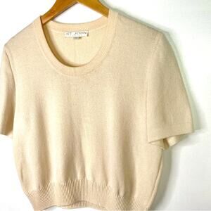 St. John Cream Top Short Sleeve Blouse Knit Beige Basics Medium