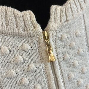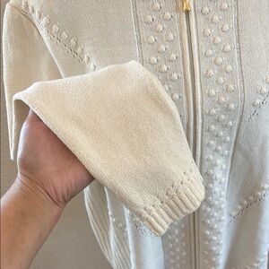 St. John Cream Zipper Wool Cardigan with Cable Knit Design