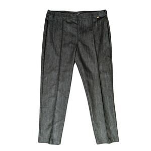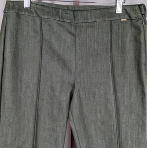 Features: side zip, front seam, tapered leg, stretch, made in the USA, cotton, elastane