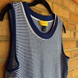 St. John Designer Blue and White Striped Sleeveless Tank Top Rayon Wool M