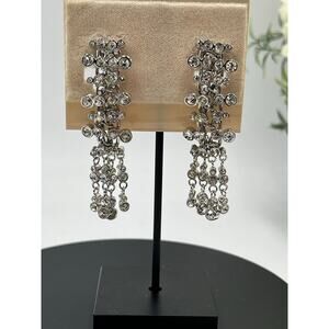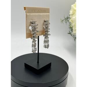 St. John Designer Crystal Chandelier Earrings Silver Tone Statement Jewelry New