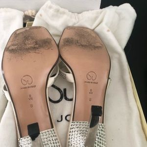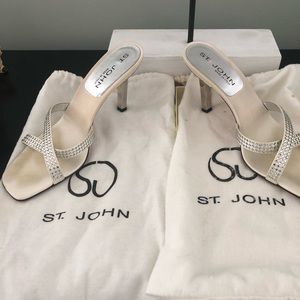 Own designer shoes for a fraction of the price. St. John Knit originally $400! GUC definite signs of wear but shoe is still in good condition for lots more wear. Please be aware designer shoes typically run 1/2- 1 size small. These for more like a U.S. 7 1/2 or 8 if you have a narrow foot.