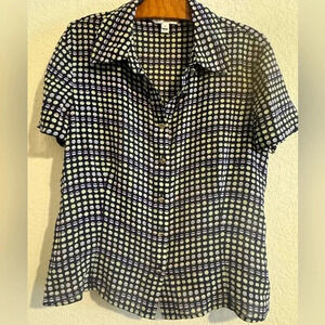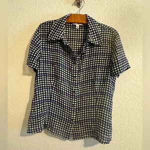 St. John Dizzy Patterned Polka Dot Multicolored Size 8 Blouse Top