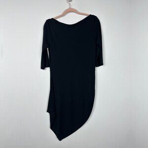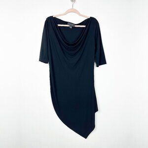 St. John Draped Cowl Neck Asymmetrical Dress Short Sleeve Black Small #A0564