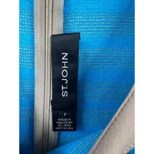 St. John Dress Blue Tan Striped Sleeveless Crewneck A-Line Fit & Flare Wool Knit