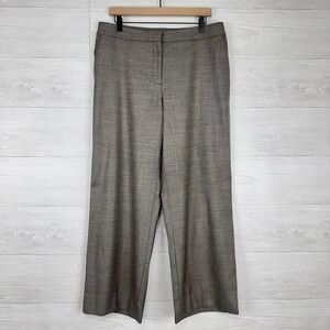 St. John Dress Pants Women Size 14 Tan Brown Wool Silk Blend Wide Leg Office