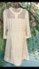 Sophisticated midi dress by St. John. Features a refined cream hue. Ideal for formal events. Semi sheer front panels and sleeves. Skirt has sheer paneling on both sides. Back zip.