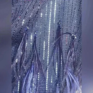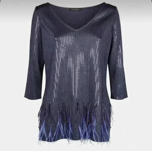 St. John Embellished Feather Sequin V-neck 3/4 sleeve Blouse Small Wool Blend