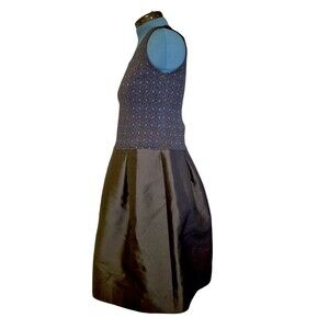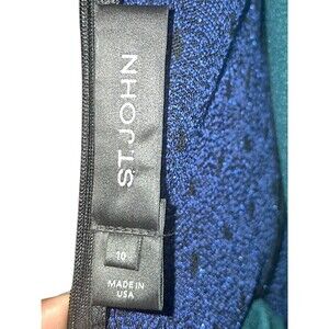 St. John Etched Geo Sparkle Jacquard & Mikado Black Blue Satin Dress SIZE 12