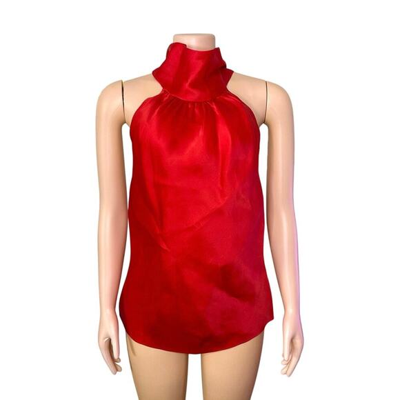 St. John Evening 100% Silk Enamel Red Women’s Halter Tie Neck Blouse Size 10 NWT