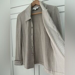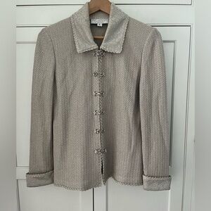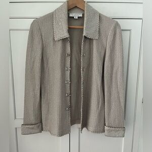 St. John Evening Alabaster Ivory Rhinestone Santana Knit Suit Jacket Size 6