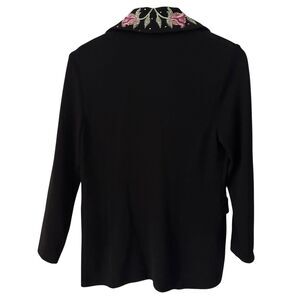 St. John Evening Black Blazer Cardigan with Embroidered Flowers Size 4