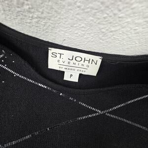 St. John Evening Black Knit Paillette Rhinestone Embellished Top Size P Medium