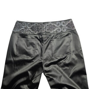 St. John Evening Black Satin Embroidered Waist Pants Size: 8