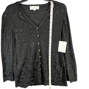 St John Evening Cardigan 2 Black Sparkly Metallic Sweater Quiet Luxury Vintage