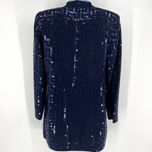 St. John Evening Geometric Greek Key Pattern Navy Sequin Long Sleeved Dress 8